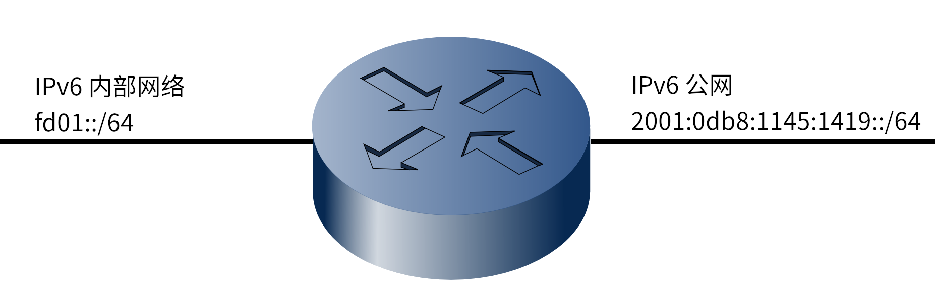 假设内部网络的 IP 段是 fd01::/64,外部网络的 IP 段是 2001:0db8:1145:1419::/64,那么就有如下的映射关系: